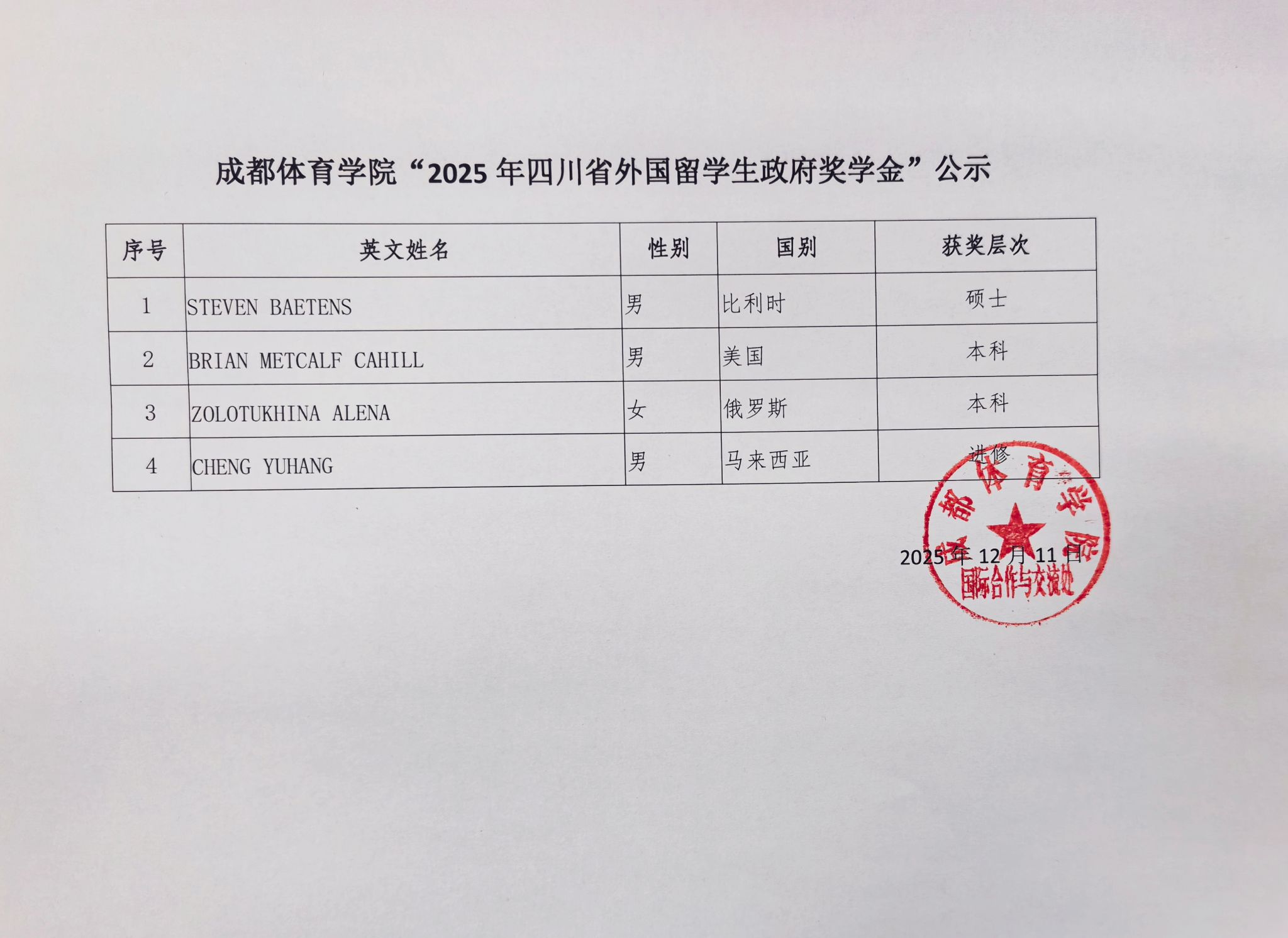 下一篇:成都体育学院“2025年成都市外国留学生政府奖学金”公示